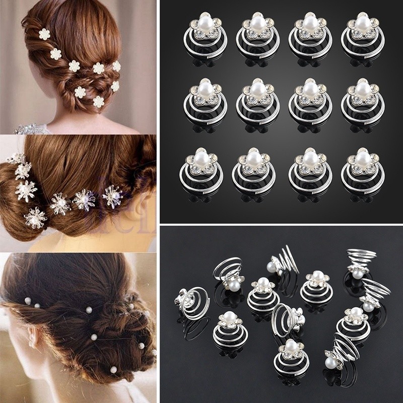 12pcs Bridal Wedding Crystal Hair Twists Swirls Pins Spirals Pearl