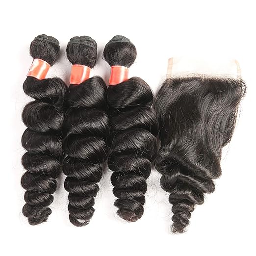 Indian Hair 3 Bundles With Lace Closure Loose Wave 100 Human Hair