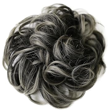 Scrunchie Hair Extension Curly Up Do Black Grey Mix Curly
