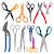 These shears resemble the scissors that we use at home with holes for the index finger and thumb at one end and two blades that meet when a cut is made.